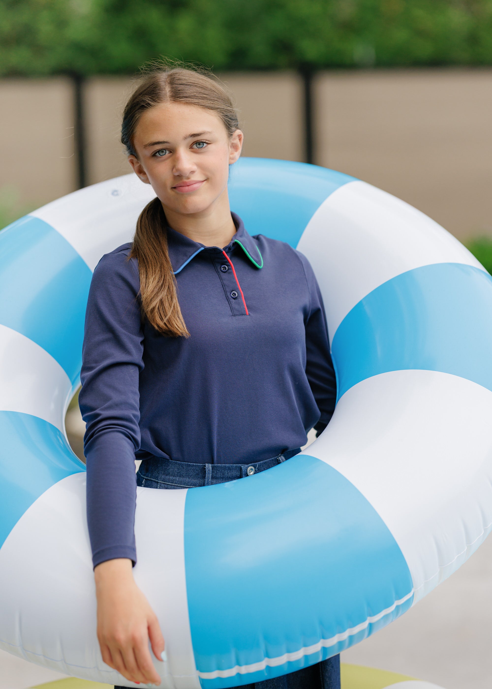 Preppy perfection for the teen wardrobe. The Velvette Label Contrast Piping Polo updates a classic silhouette with sharp, modern piping details. Made from luxury pique or jersey knit, it offers a structured look that is far superior to standard polos. It pairs beautifully with the brand's midi skirts for a smart-casual look.