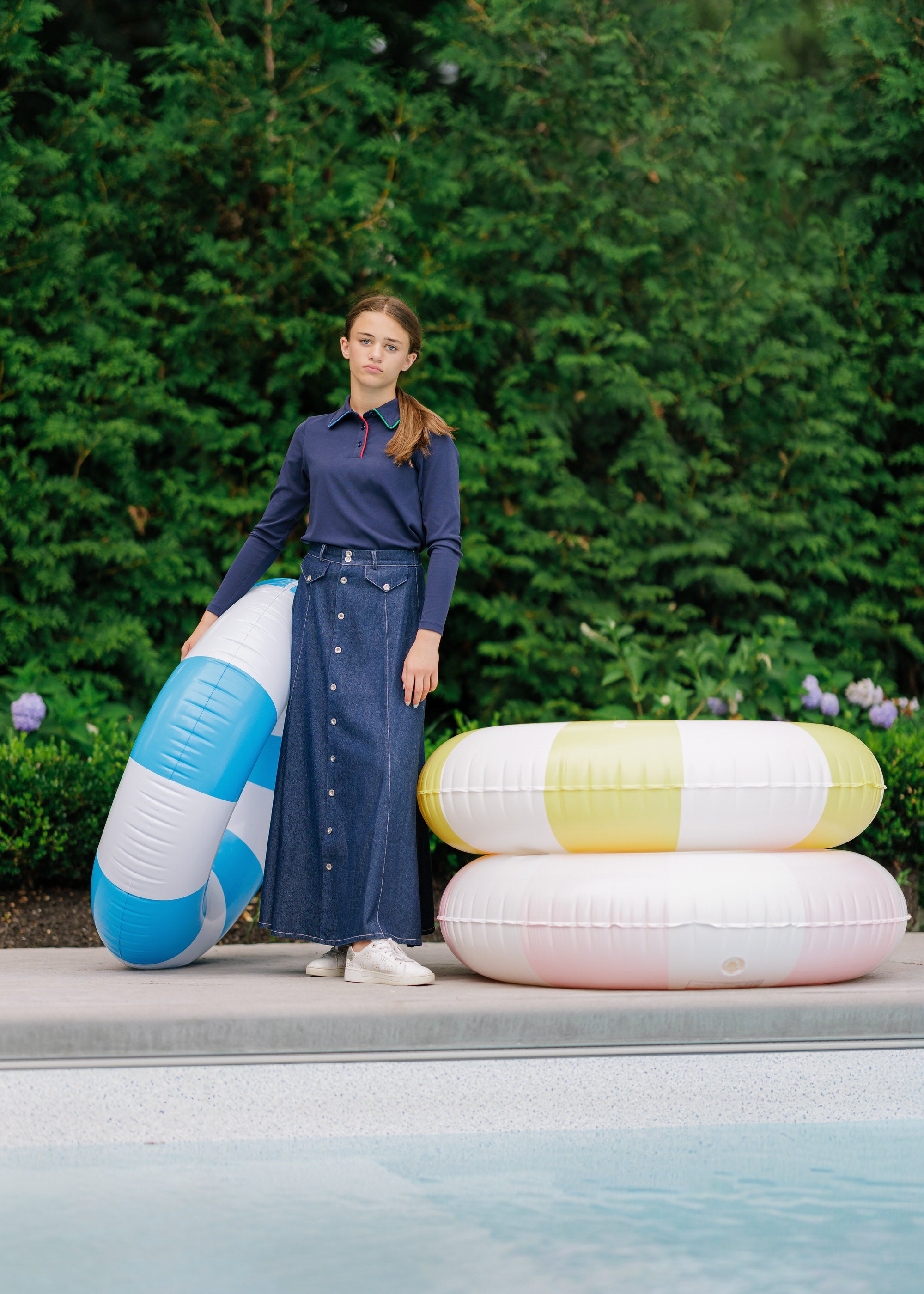 The Velvette Label Maxi Snap Skirt brings a sporty-chic edge to modest fashion. Designed for the teen who values comfort and trend, this skirt features functional snap details along a maxi silhouette. It offers full coverage with the ease of movement needed for a busy weekday, all while maintaining the brand's standard of luxury.