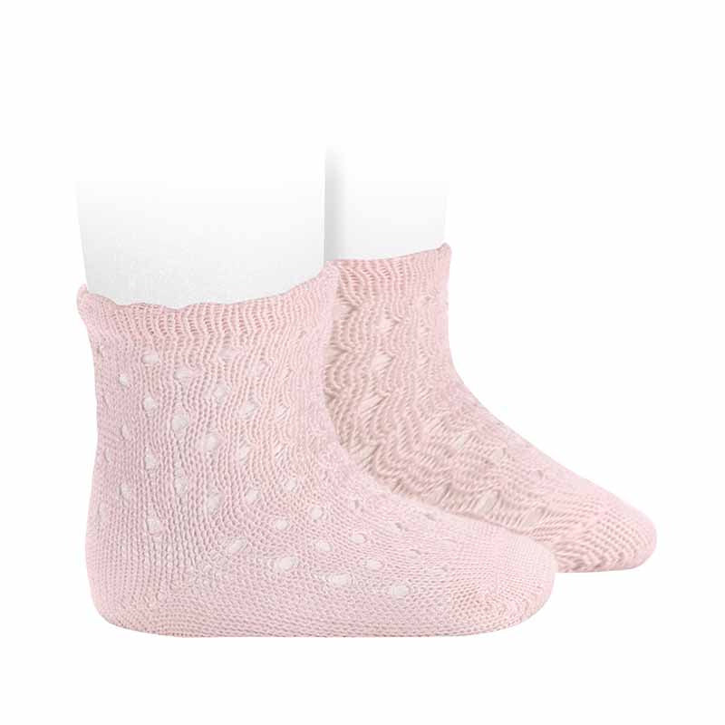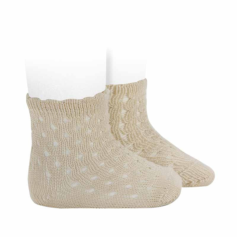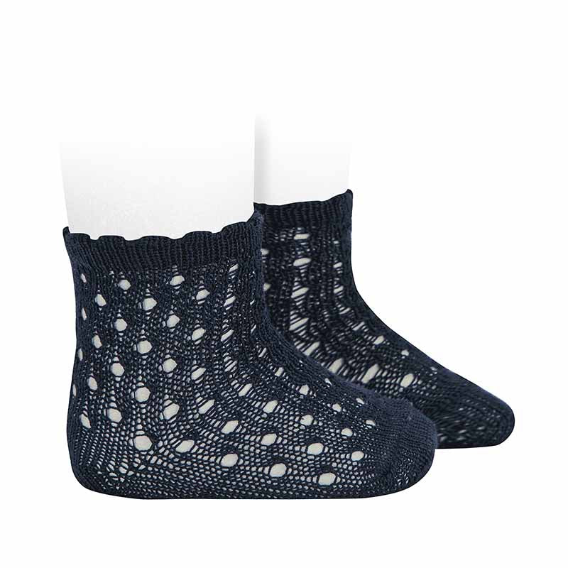 3.503/4 - Openwork extra fine perle ankle socks with fancy cuff.